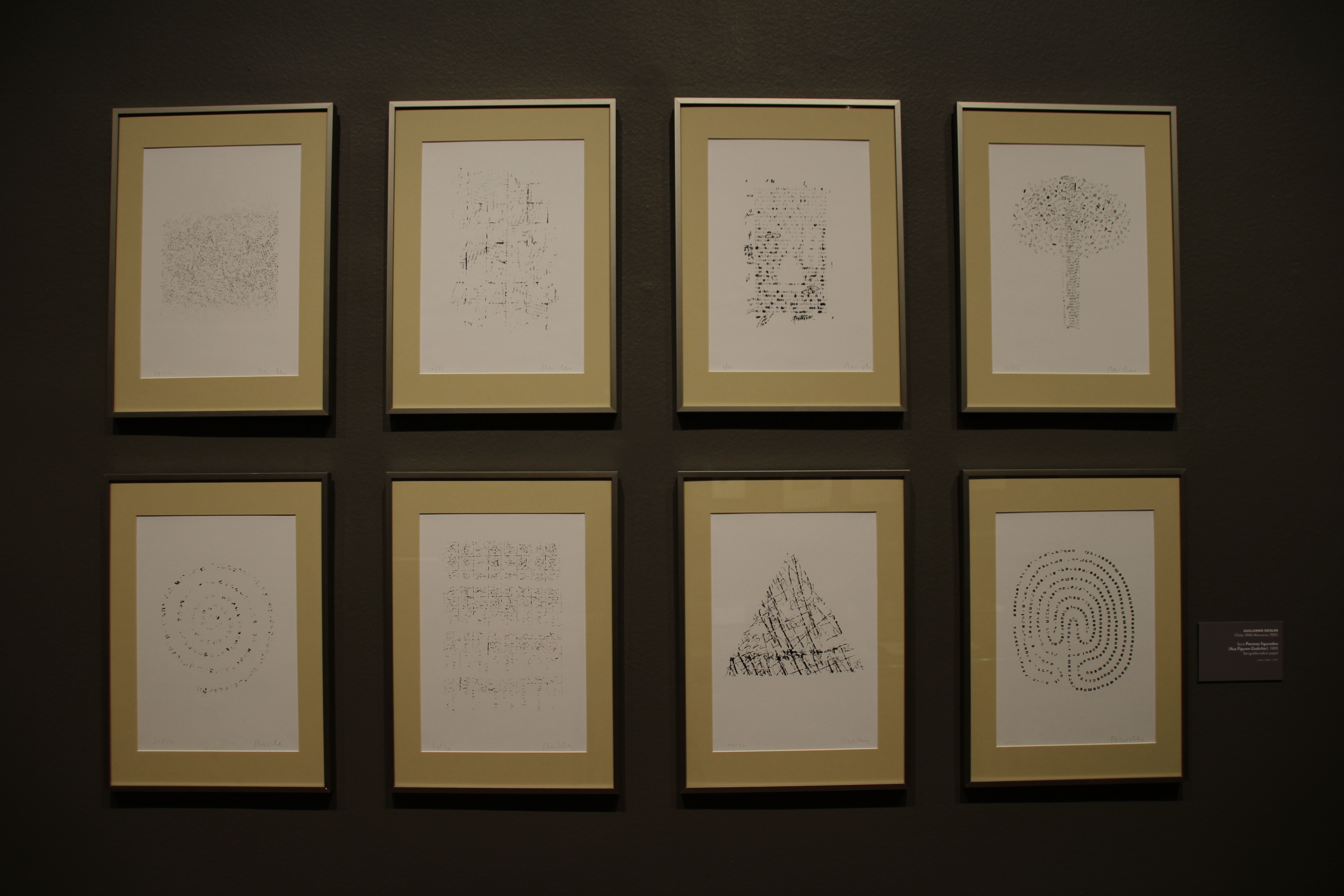 La selección de obras de la curadora MNBA, Paula Honorato, se integran al campo de las artes visuales desde su condición de poemas y abarca manifestaciones como el land art, el collage, la pintura, el grabado, el caligrama, el objeto, la performance, el libro de artista, la intervención en el paisaje, el poema animado y el sonoro, y otras expresiones que desdibujan las fronteras disciplinares establecidas entre las artes visuales y la literatura.
