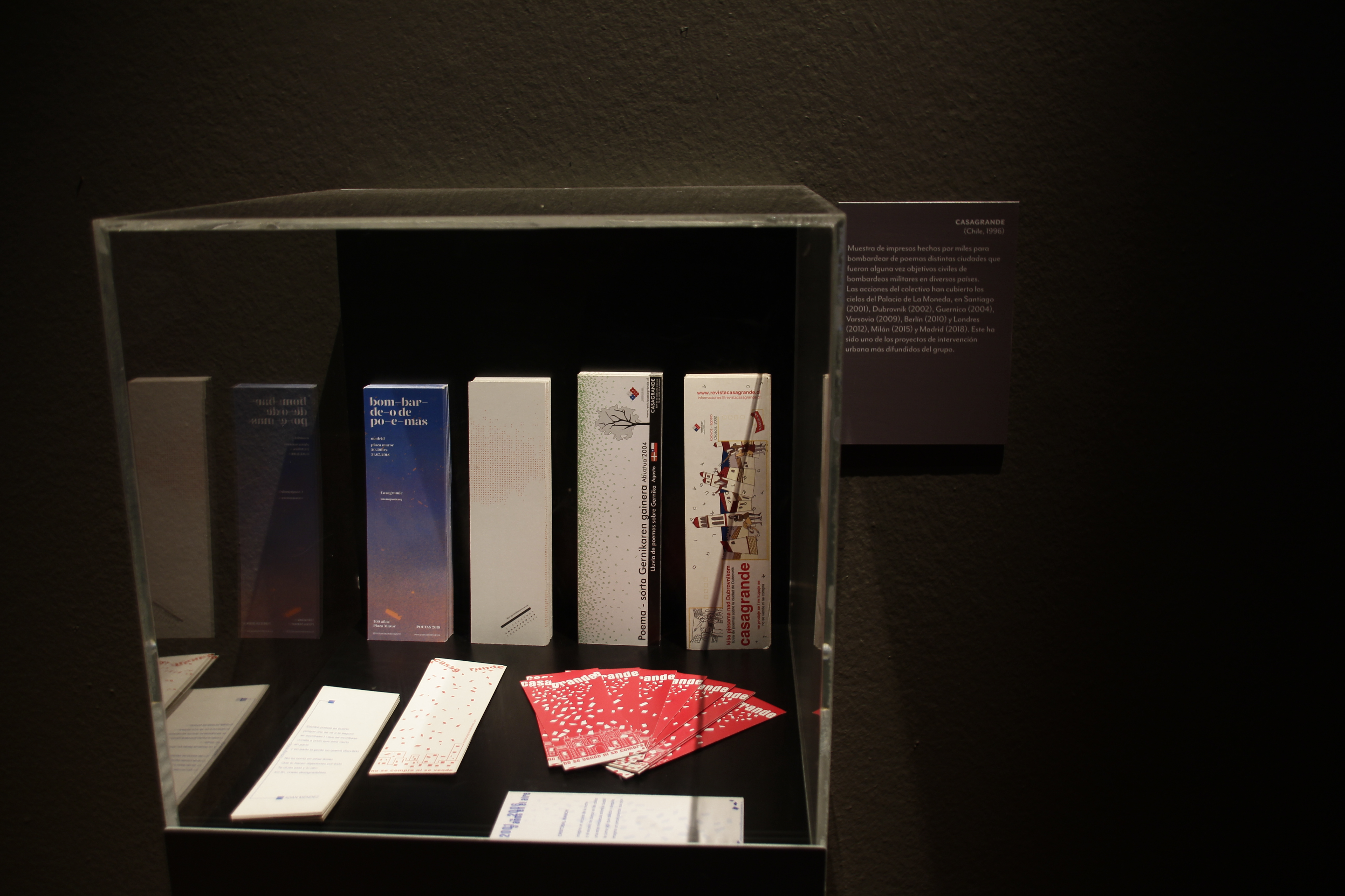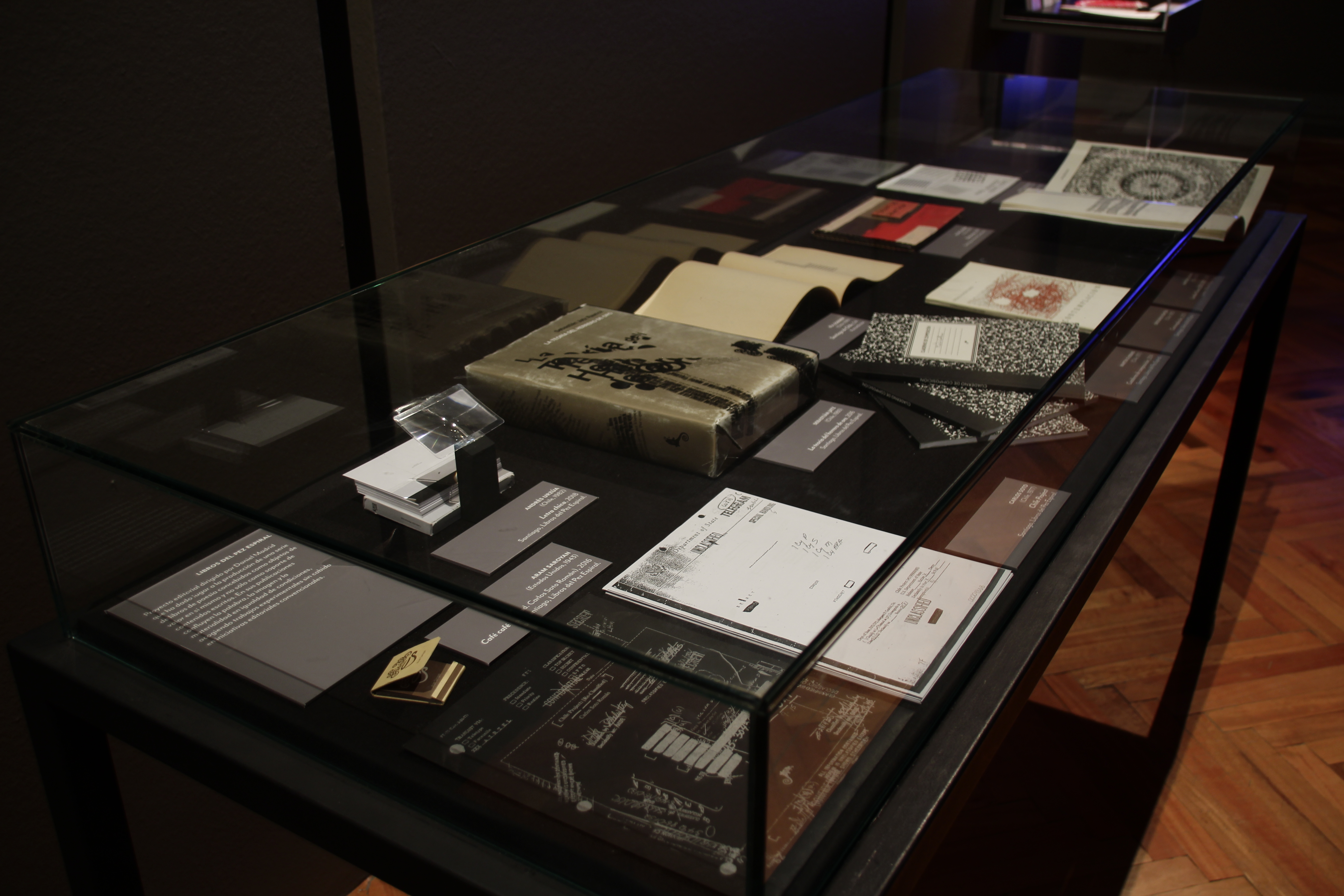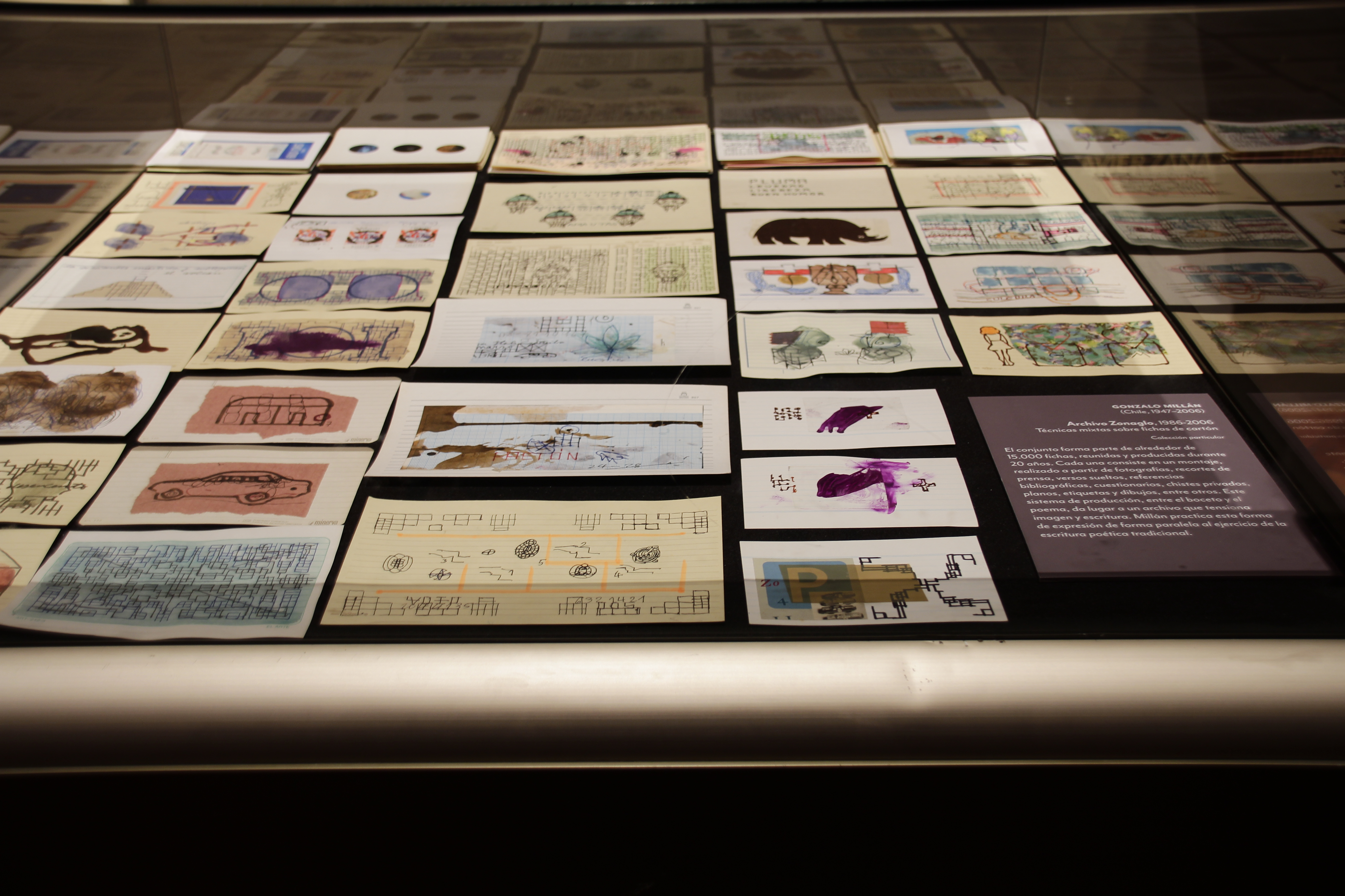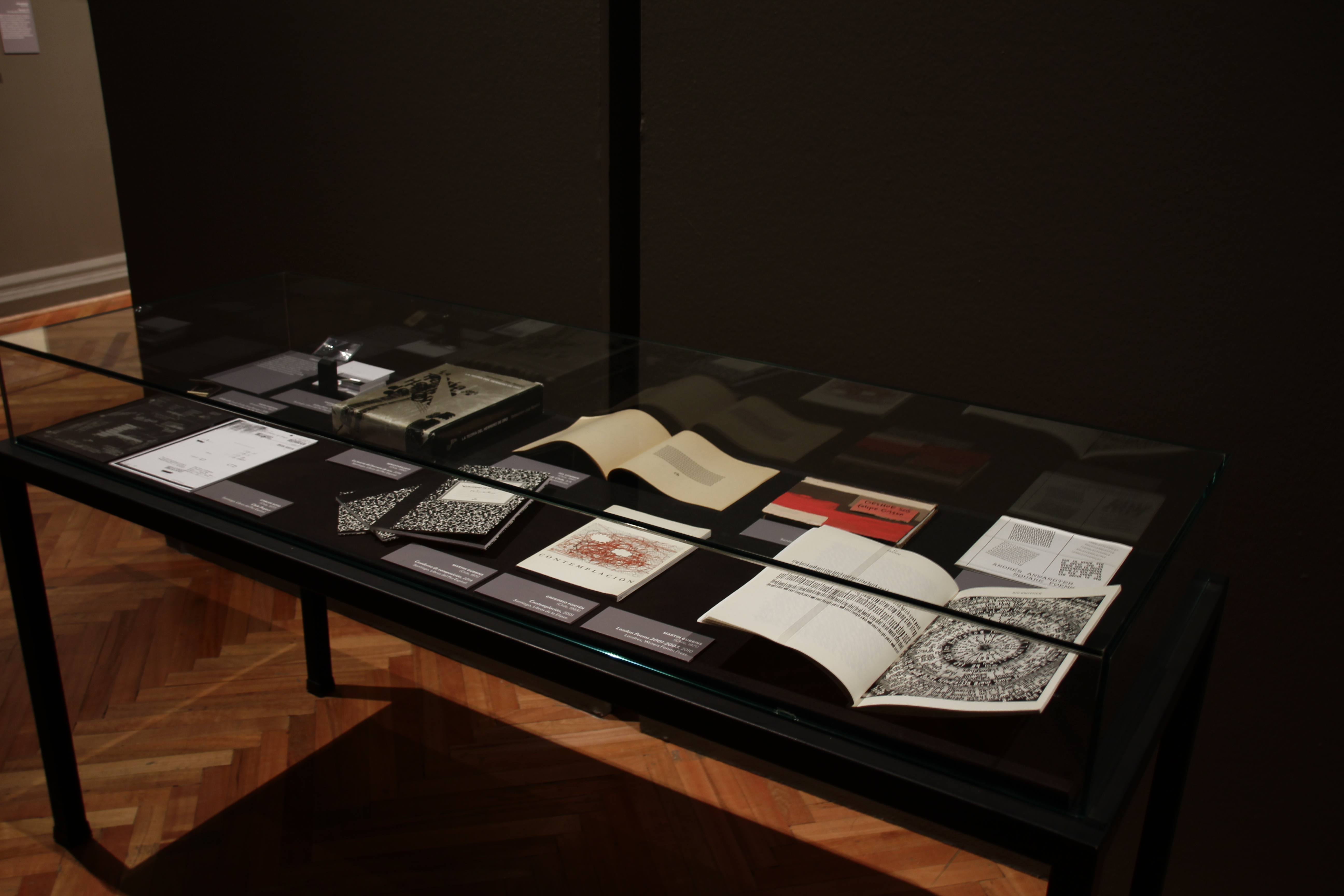 Sin pretender ser exhaustiva, la exposición cubre temporalmente desde los primeros caligramas de Vicente Huidobro (1893-1948), publicados en 1913, hasta las múltiples formas expresivas que cultiva la escena en las últimas dos décadas, integrada, entre otros, por El Foro de escritores y el colectivo Casagrande. Se incluyen obras de los surrealistas Braulio Arenas (1913-1988), Jorge Cáceres (1923-1949) y Ludwig Zeller (1927-), así como el proyecto Amereida (1965), cuyo afán es el encuentro entre poesía, trabajo y estudio. Se suma la experiencia colectiva de El Quebrantahuesos (1952-) que sienta un precedente como poesía urbana.