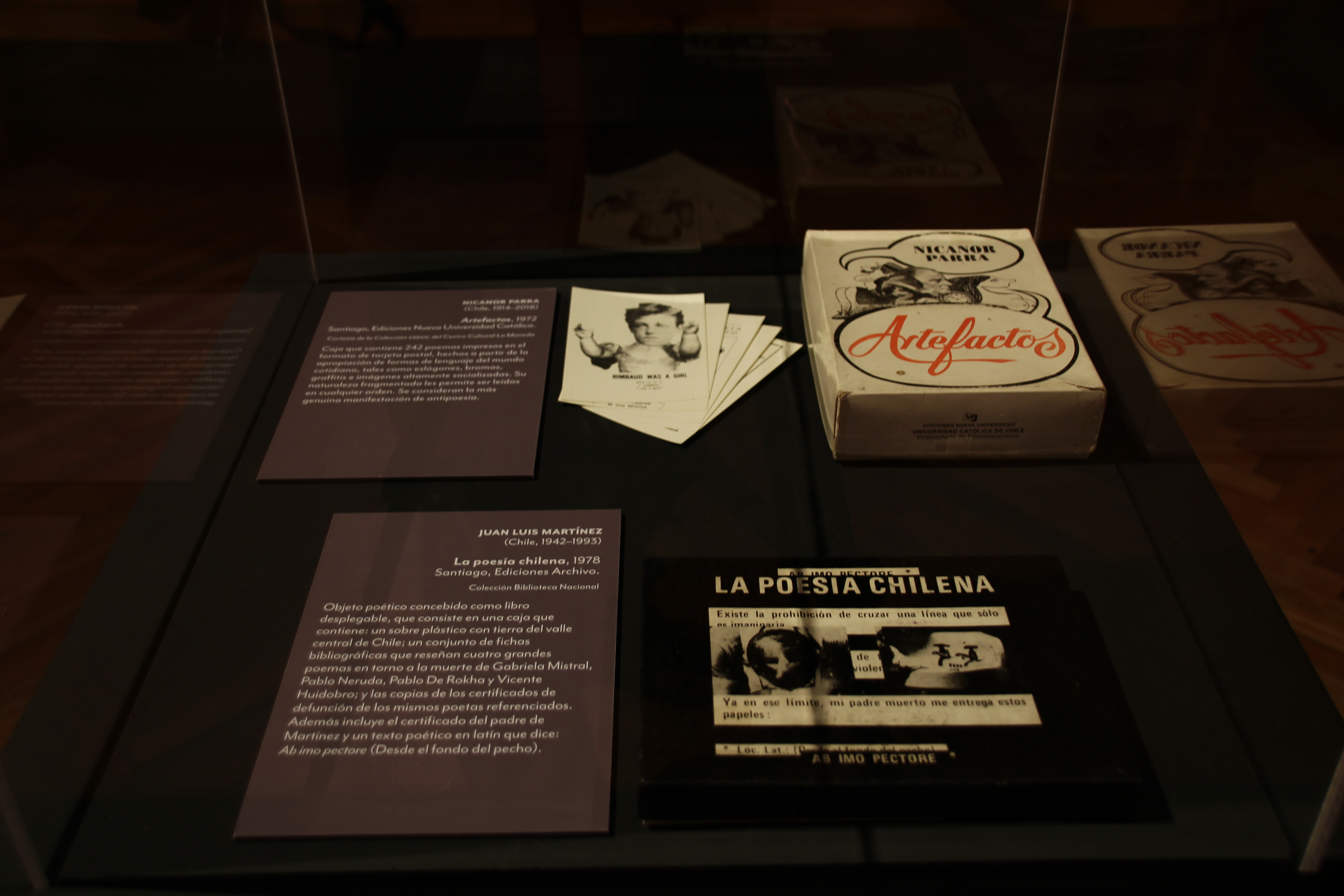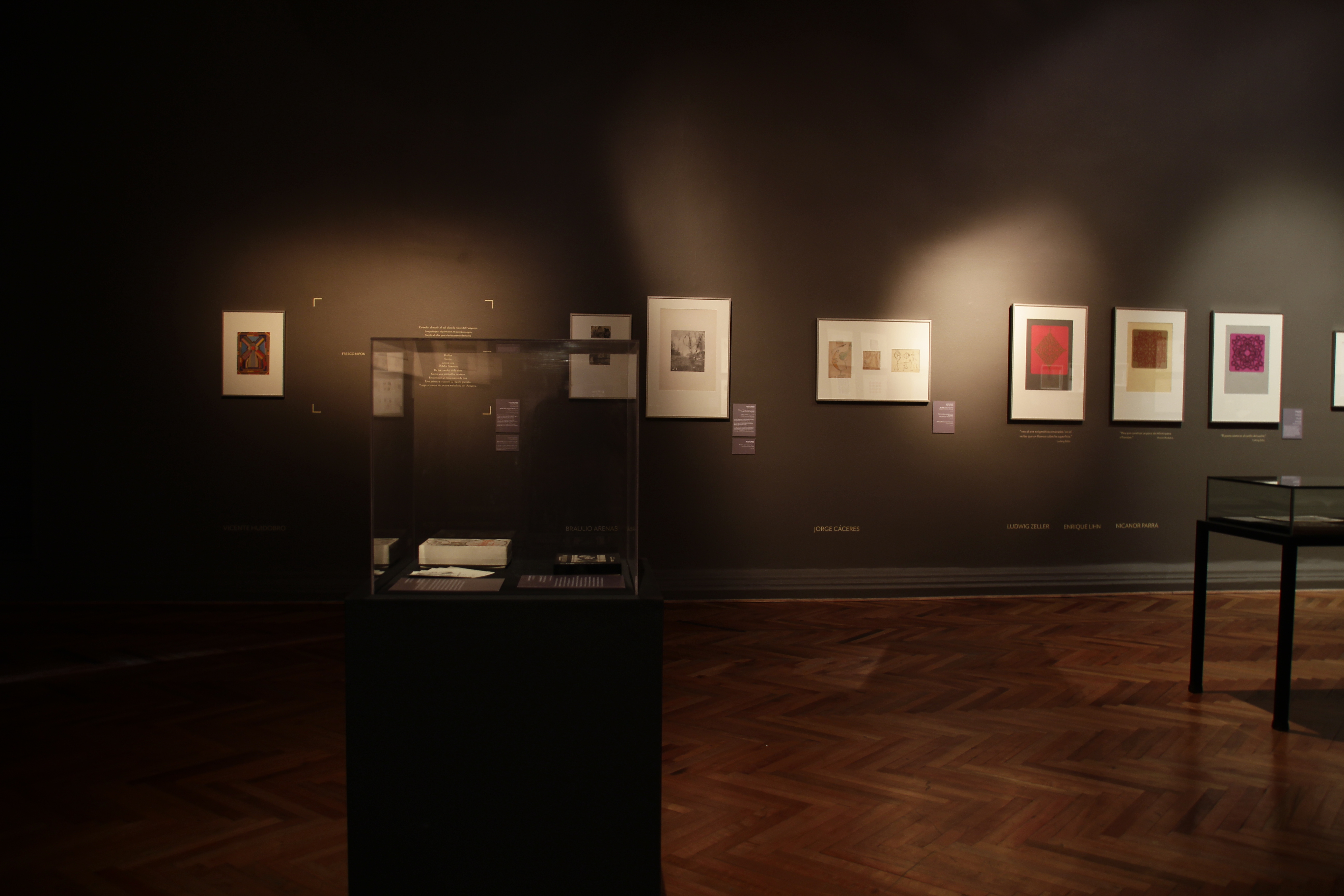 Además, comprende obras neovanguardistas, como las de Juan Luis Martínez (1942-1993), Nicanor Parra (1914-2018), Enrique Lihn (1929-1988), Raúl Zurita (1950), Ronald Kay (1941-2017), Cecilia Vicuña (1948), Guillermo Deisler (1940-1995), Claudio Bertoni (1946-), Gonzalo Millán (1947-2006), Sybil Brintrup (1954-) y Carlos Montes de Oca (1960-). Siguiendo esta misma línea, con énfasis en la coyuntura política de la década de los ochenta, se muestran trabajos de Carmen Berenguer (1946), Francisco Javier Zañartu (1955- ) y Hernán Meschi (1959- ).